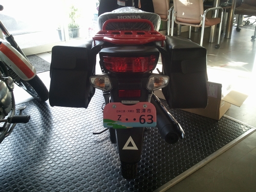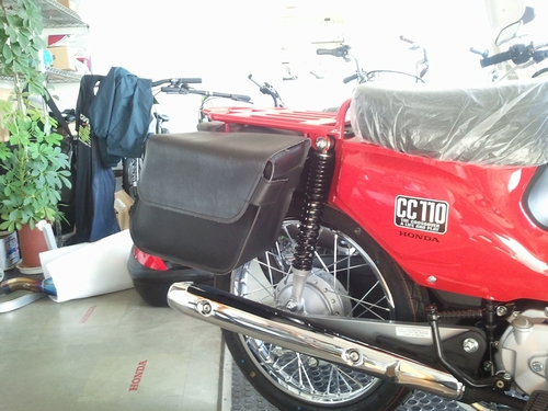 新車のクロスカブにお客さんが持ってこられた革の鞄を取り付けました
