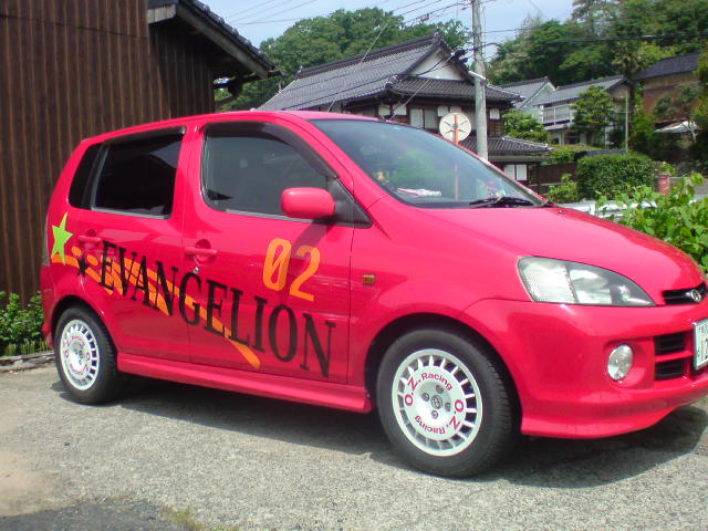 最近丹後でも痛車を見かけるようになってきましたが、昨日エヴァのデザインの車を発見しました。